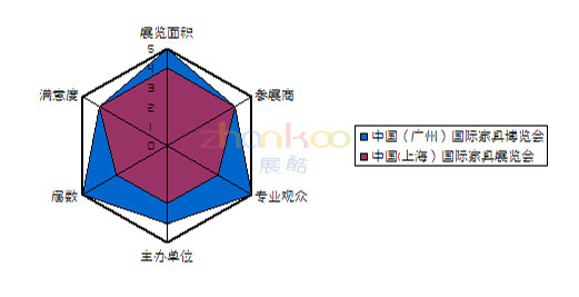 首先我們從六個(gè)指標(biāo)來看兩個(gè)展會(huì)的實(shí)力如何?從圖可以看出,廣州展略勝一籌。