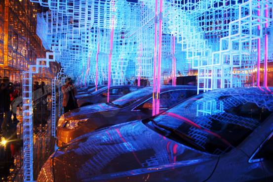 今年,中國影院上映了徐崢主演并擔(dān)任監(jiān)制的《催眠大師》,讓我們對催眠有了進一步的了解,所謂的催眠大師就是可以通過催眠技巧不知不覺將人引入幻像空間的人。這樣看來,光影藝術(shù),就是展會上的“催眠大師”,它可以輕松抓住參觀者和采購商心理,將其吸引到自己的展臺上來。在畢加展覽所創(chuàng)立的營銷型展臺中,光影藝術(shù)被利用得更充分和有效,不僅使空間的功能得到修整和完善,甚至創(chuàng)造一種新的文化底蘊。
