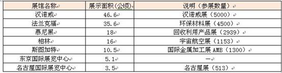 德國(guó)有22個(gè)國(guó)際展館,下表為德國(guó)幾個(gè)展館與日本兩大展館的對(duì)比數(shù)據(jù)。由此可見,號(hào)稱世界最大的漢諾威展館的展示面積是名古屋國(guó)際展覽中心展示面積的13倍多。而德國(guó)國(guó)內(nèi)相對(duì)較小的斯圖加特展館,其展示面積也是號(hào)稱日本展示面積最大的東京國(guó)際展覽中心的兩倍多。?