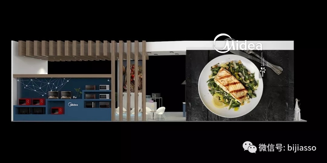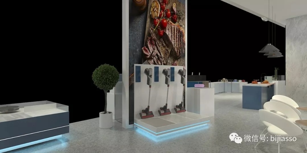 明星產(chǎn)品采用階梯式的純白烤漆展臺陳列讓黑色面的產(chǎn)品凸顯,后面豎立的通光玻璃映照出產(chǎn)品參數(shù)設(shè)計更顯科技感。展臺前端放置落地發(fā)光LOGO讓攝影者更好的把美的植入各大的手機朋友圈里,從而達到營銷傳播的目的。