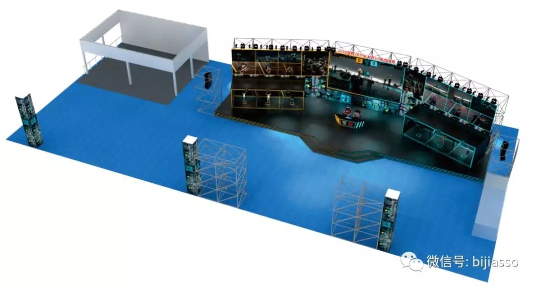 畢加深圳分公司根據(jù)活動,在設(shè)計上以VR區(qū)域為主要中展示,主體采用扇形主體,形成包攬型舞臺,突顯華夏動漫作為主辦方的包攬,開放式。