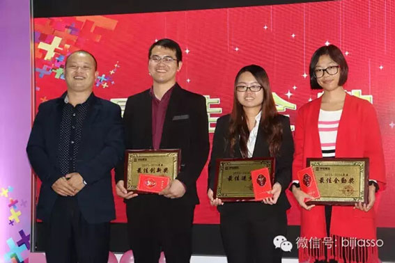 不要著急,還有三個(gè)最佳獎(jiǎng)項(xiàng),榮獲2015年度最佳創(chuàng)新獎(jiǎng)的是加索工廠總經(jīng)理王春才,王廠在型材以及新型材料的應(yīng)用摸索上,放眼全公司,亦或是戴總易總,他們都沒(méi)有這方面的經(jīng)驗(yàn),所以王廠無(wú)論實(shí)在推廣型材創(chuàng)新,新型材料的發(fā)展及應(yīng)用上面都是第一人,創(chuàng)造了很多新的運(yùn)用方法和技巧。型材必定是展覽行業(yè)的趨勢(shì),在王廠的悉心經(jīng)營(yíng)下,越來(lái)越多展商找到了我們要求進(jìn)行型材搭建;