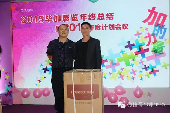 緊接著頒發(fā)的是畢加集團(tuán)個(gè)人業(yè)績(jī)冠軍獎(jiǎng),榮獲畢加展覽2015年度集團(tuán)個(gè)人業(yè)績(jī)冠軍獎(jiǎng)的是墨戈畢加總經(jīng)理,畢加項(xiàng)目部總監(jiān)楊興強(qiáng)楊總。不錯(cuò),真的是項(xiàng)目部,真的是耶,就是項(xiàng)目部。